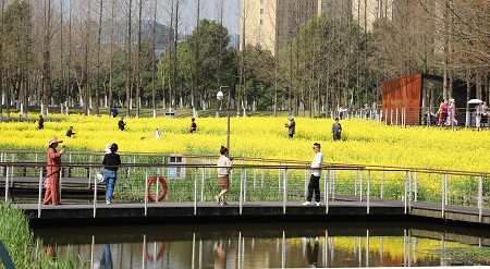 東部新城生態(tài)走廊三期的油菜花開了。油菜花那抹明媚的黃,自是春天好溫暖耀眼的色彩。