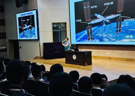 5月12日晚,中國科學(xué)院老科學(xué)家科普演講團(tuán)副團(tuán)長(zhǎng)石磊走進(jìn)寧波市鄞州區(qū)第二實(shí)驗(yàn)中學(xué)主講《走進(jìn)中國空間站》,為孩子們帶來一場(chǎng)奇幻的“星際之旅”。