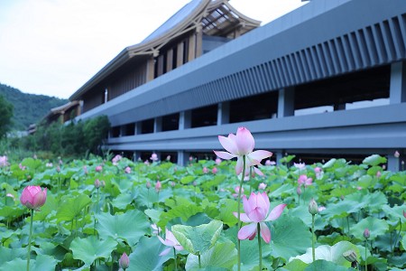 近日,位于東錢湖的寧波國際會議中心的百畝荷塘正值盛花期,亭亭荷花滿池盛放,成為夏日賞荷郊游勝地。